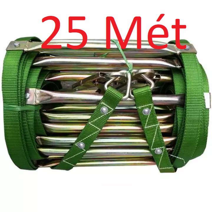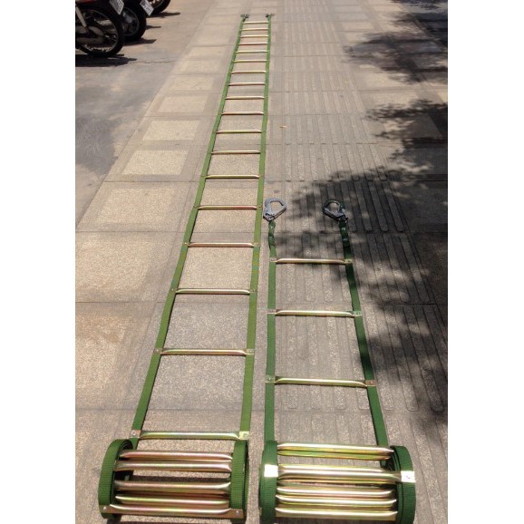Chiều dài thang dây: 25mGồm 2 móc lớn. Để cố định khi sử dụng thang