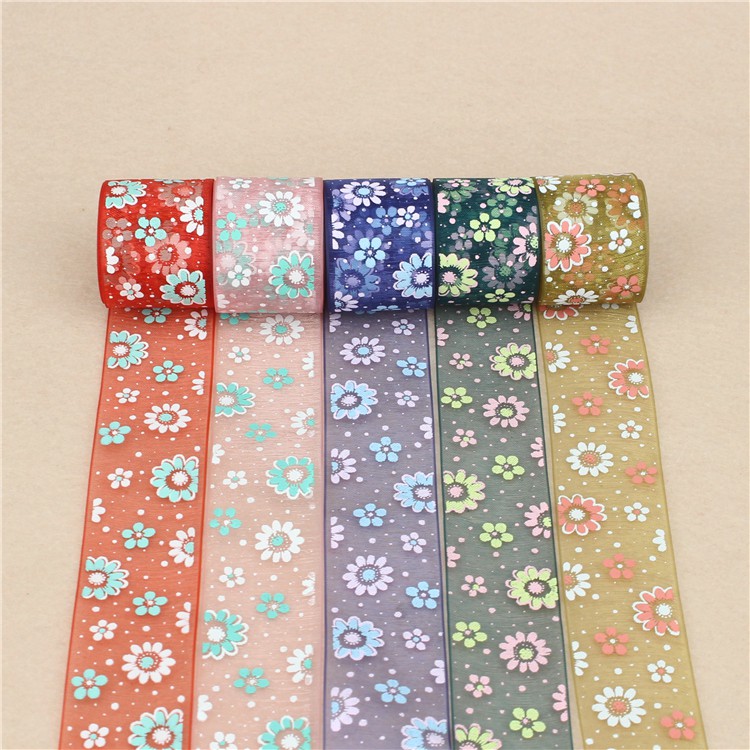 Nhà cửa & Đời sống > Trang trí nhà cửa > Khác || 25mm ruy băng voan họa tiết hoa cúc phụ kiện thời trang phụ liệu nơ tóc đồ handmade thủ công gói quả trang tríCòn hàng