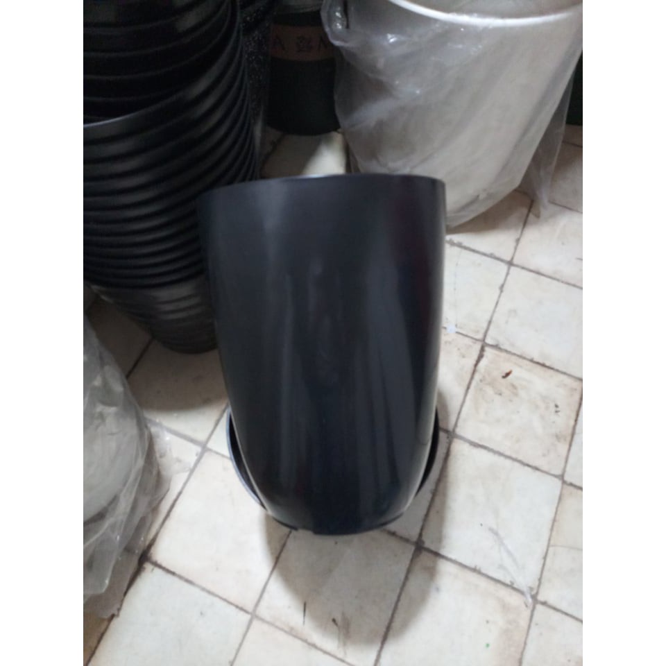 Giới thiệu (26x34cm) Chậu nhựa Bom trơn đen giả sứ cty loại 1_Chậu bầu đứng dáng cao size 1