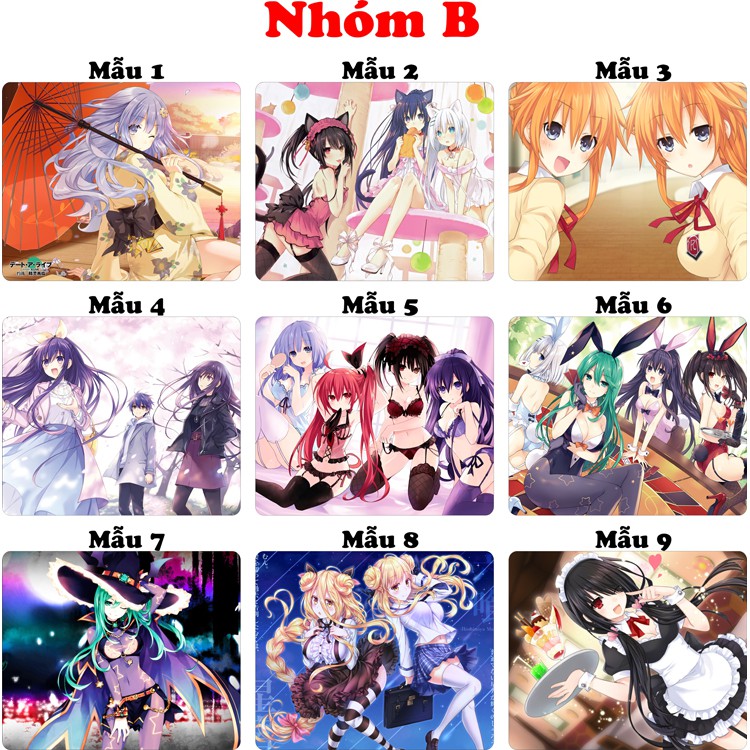 Giới thiệu <27 mẫu>Lót chuột máy tính Anime Date A Live cỡ bàn di chuột lớn 20x24cm chất liệu mouse pad cao su