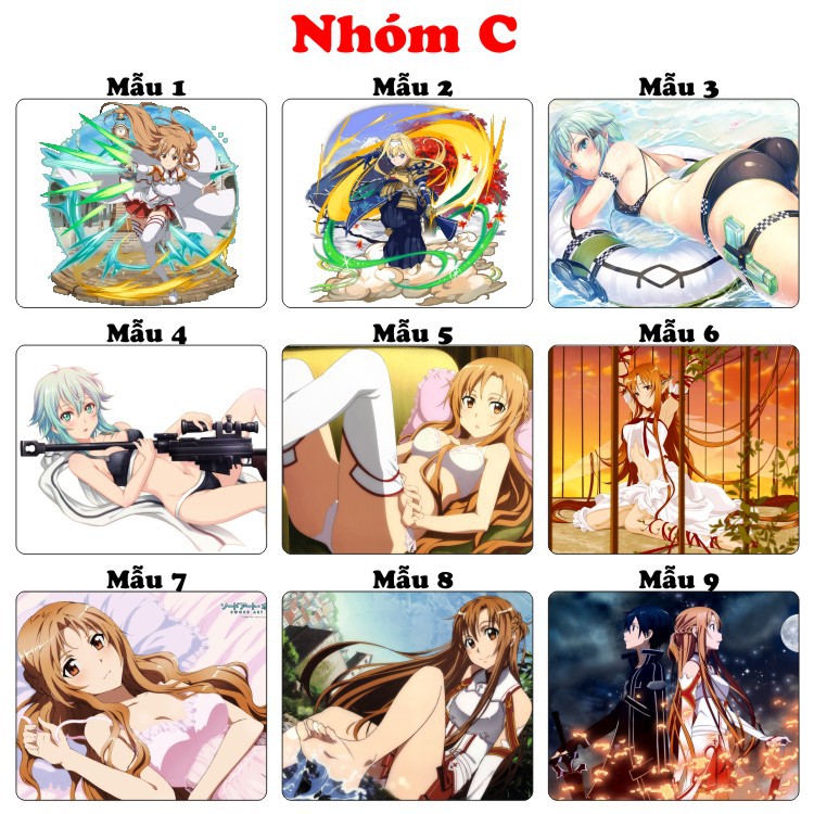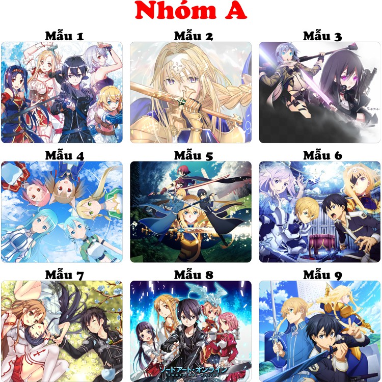 Giới thiệu <27 mẫu>Lót chuột máy tính Anime SAO Sword Art Online cỡ bàn di chuột lớn 20x24cm chất liệu mouse pad cao su