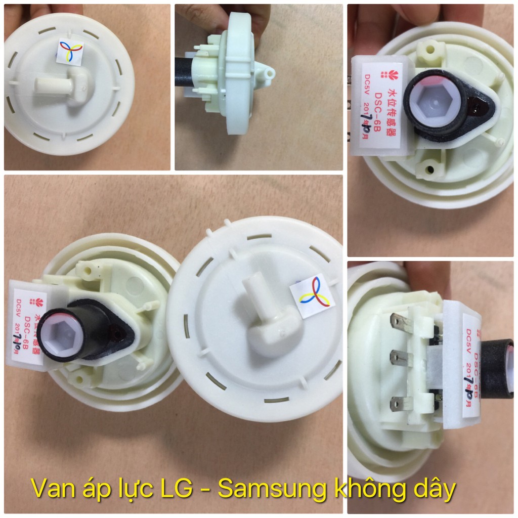 + Van áp lực máy giặt LG / Samsung (Không dây tiô)Phao áp suất hay còn gọi là van áp lực máy giặt thực chất là một công tắc cảm biến mức nước, được kết nối trực tiếp với board mạch. Vai trò chính là xác định mức nước thích hợp với số lượng quần áo được cho vào máy.