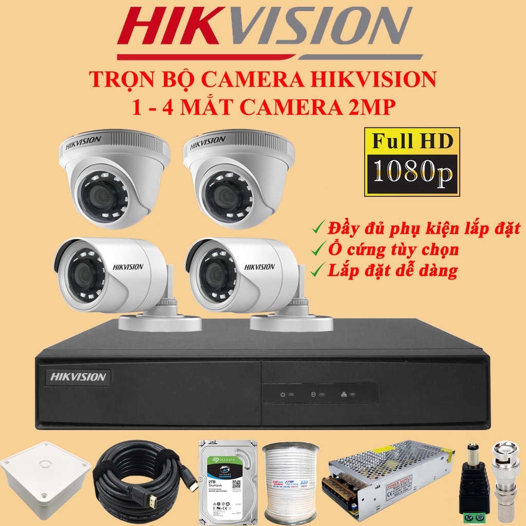 [Bộ 2mp SIêu Rẻ] Trọn bộ 1-4 camera Hikvision 2MP - 1080p full phụ kiện lắp đặt bảo hành 24 tháng