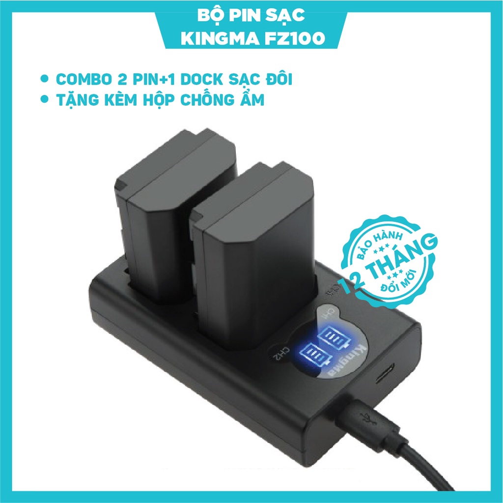Bộ 2Pin sạc đôi KingMa NP-FZ100 v2 cho Sony A9 A7III A7RII (BẢN MỚI)