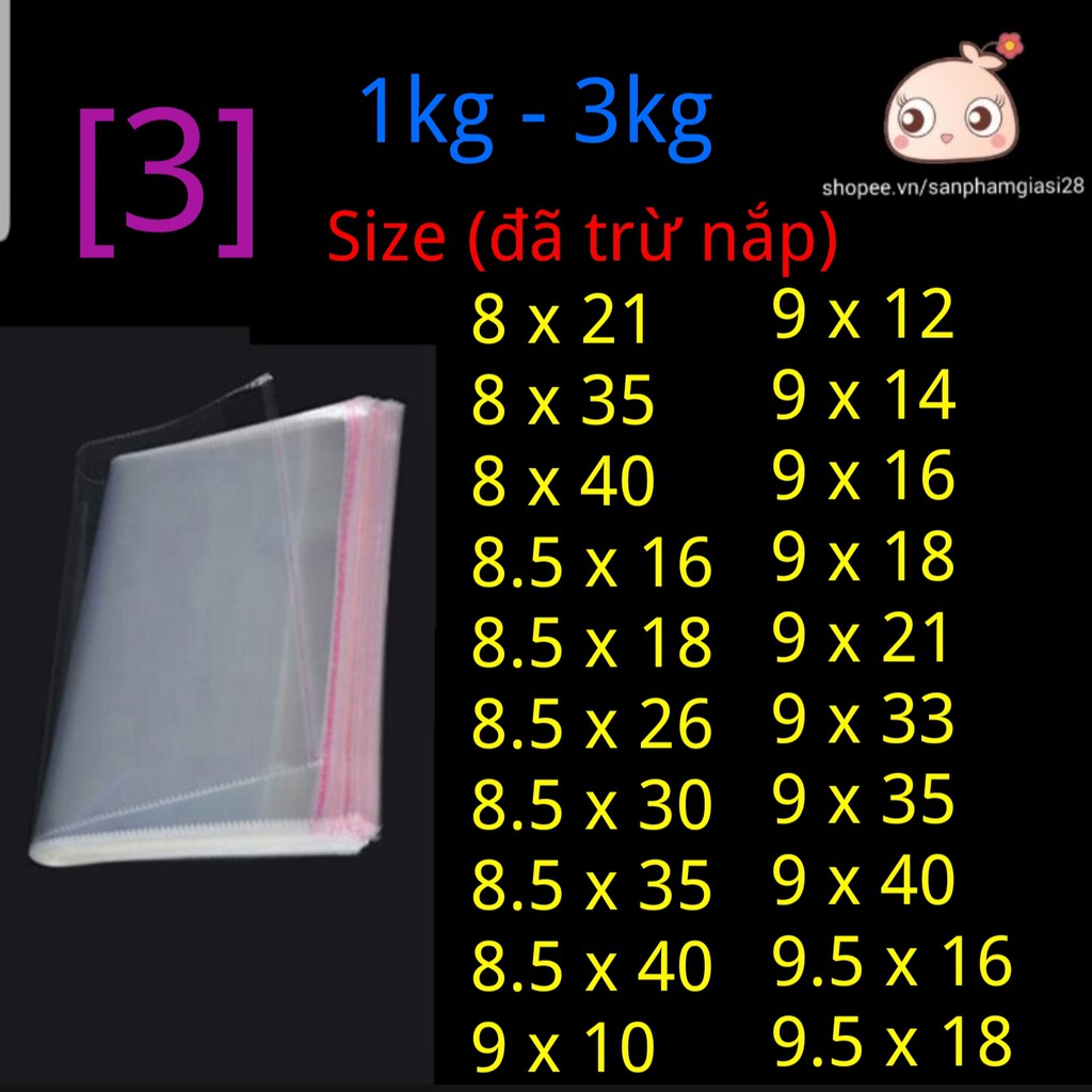 Giới thiệu (3) 1kg - 3kg Túi bóng kiếng OPP trong có keo dán SIZE NHỎ (Có 6 bài đăng cho đầy đủ size)