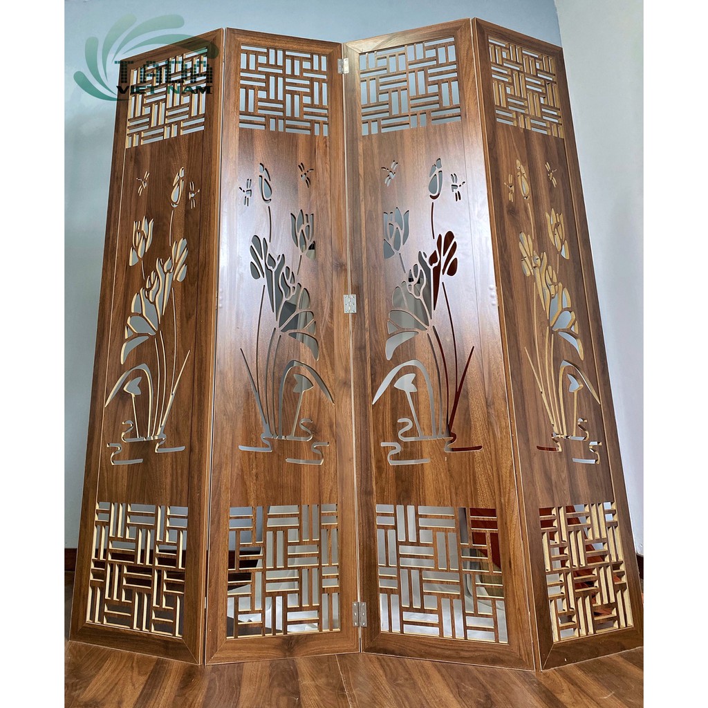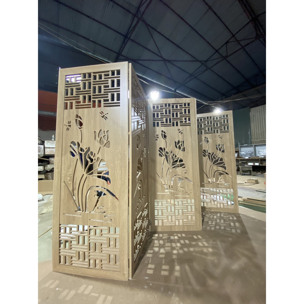 Nhà cửa & Đời sống > Trang trí nhà cửa > Rèm cửa, màn che || (3-4 tấm ) Vách bình phong ngăn phòng hoa văn sen chất liệu gỗ MDF phủ Melamin cao cấp (TD9915)Còn hàng