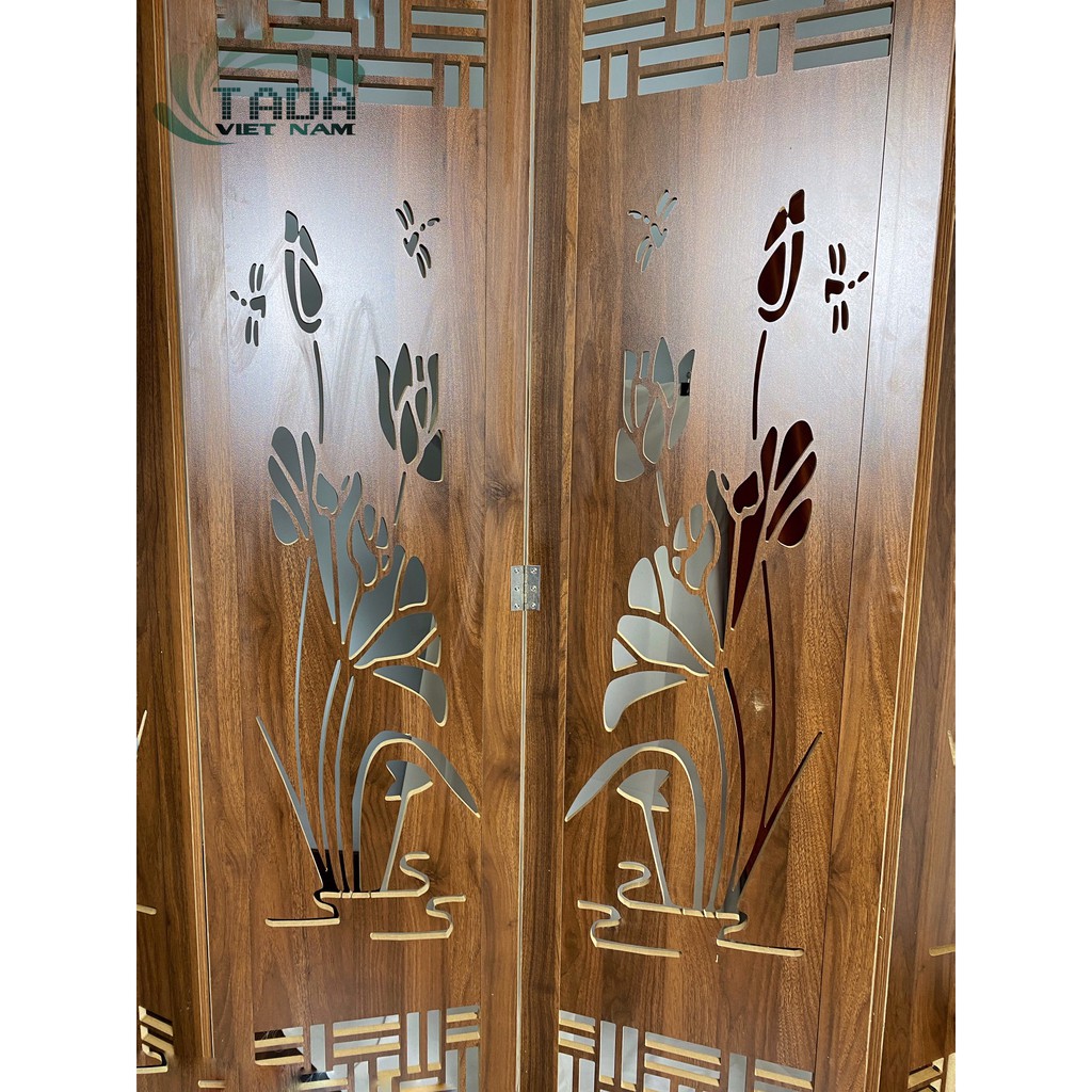 Giới thiệu (3-4 tấm ) Vách bình phong ngăn phòng hoa văn sen chất liệu gỗ MDF phủ Melamin cao cấp (TD9915)