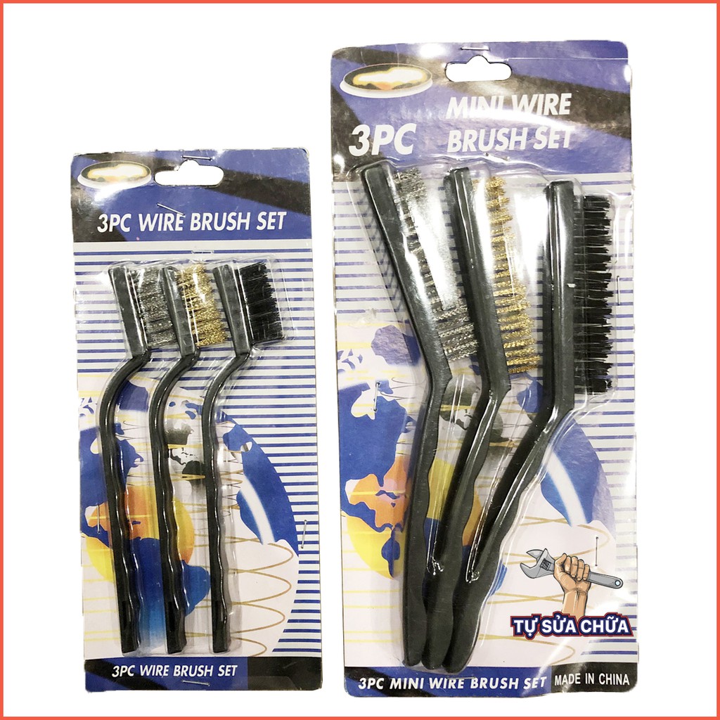 Bộ 3 bàn chải sắt, cước, đồng cán nhựa chuyên đánh rỉ sét