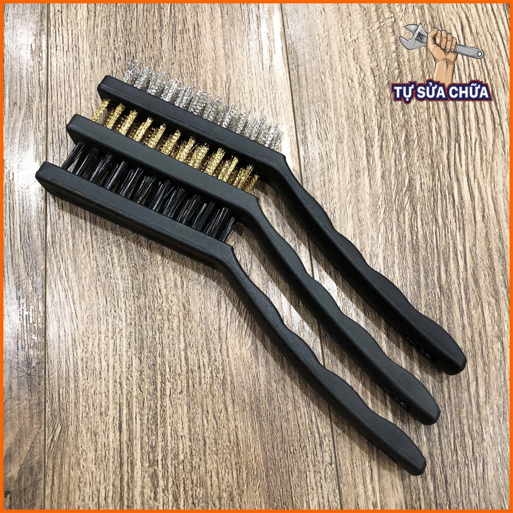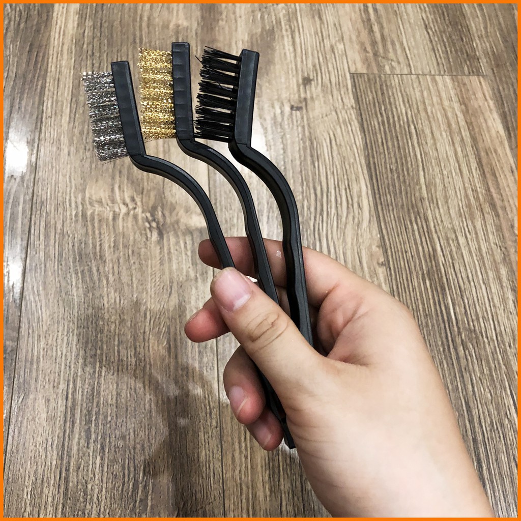 Nhà cửa & Đời sống > Dụng cụ & Thiết bị tiện ích > Dụng cụ > Giấy nhám, máy chà nhám và phụ kiện || Bộ 3 bàn chải sắt, cước, đồng cán nhựa chuyên đánh rỉ sétCòn hàng