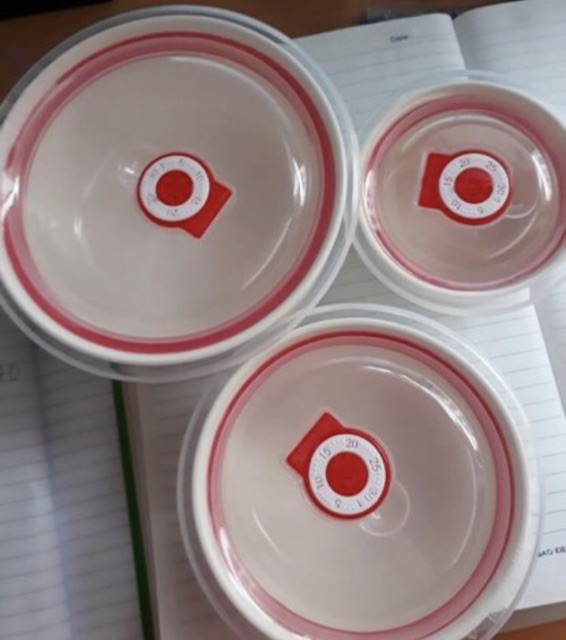 Giới thiệu Bộ 3 bát hoa hồng không tai có lắp đậy, hút chân không