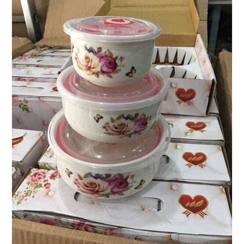 bộ 3 bát sứ có nắp hút chân không cao cấpnắp đạy chân không bảo quản tốt thực phẩm hơn ,
