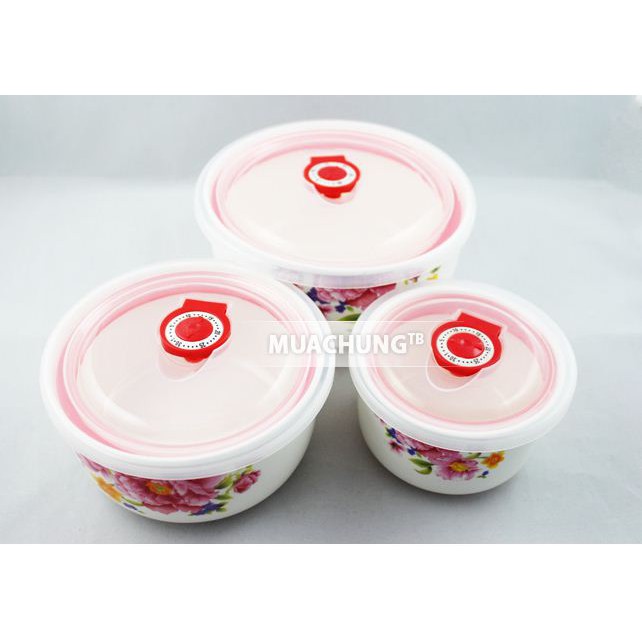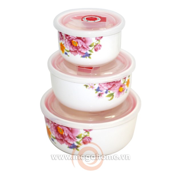 Bộ 3 bát sứ cao cấp,để lò vi sóng và tủ lạnh-Lò vi sóng đã trở nên phổ biến trong nhiều gia đình.Bộ sản phẩm hữu ích này sẽ khiến cho các bà nội trợ dễ dành xử lí đồ ăn 1 cách gọn gàng,sạch sẽ.Chỉ lưu ý,khi cho vào lò vi sóng phải gạt cho hở phần lỗ thoát hơi trên nắp đậy nhé.