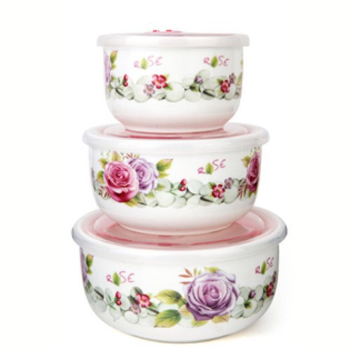 Bộ 3 bát sứ có nắp chân không bảo quản thực phẩm, Bộ 3 Bát Sứ Hút Chân Không Cao Cấp Siêu Đẹp