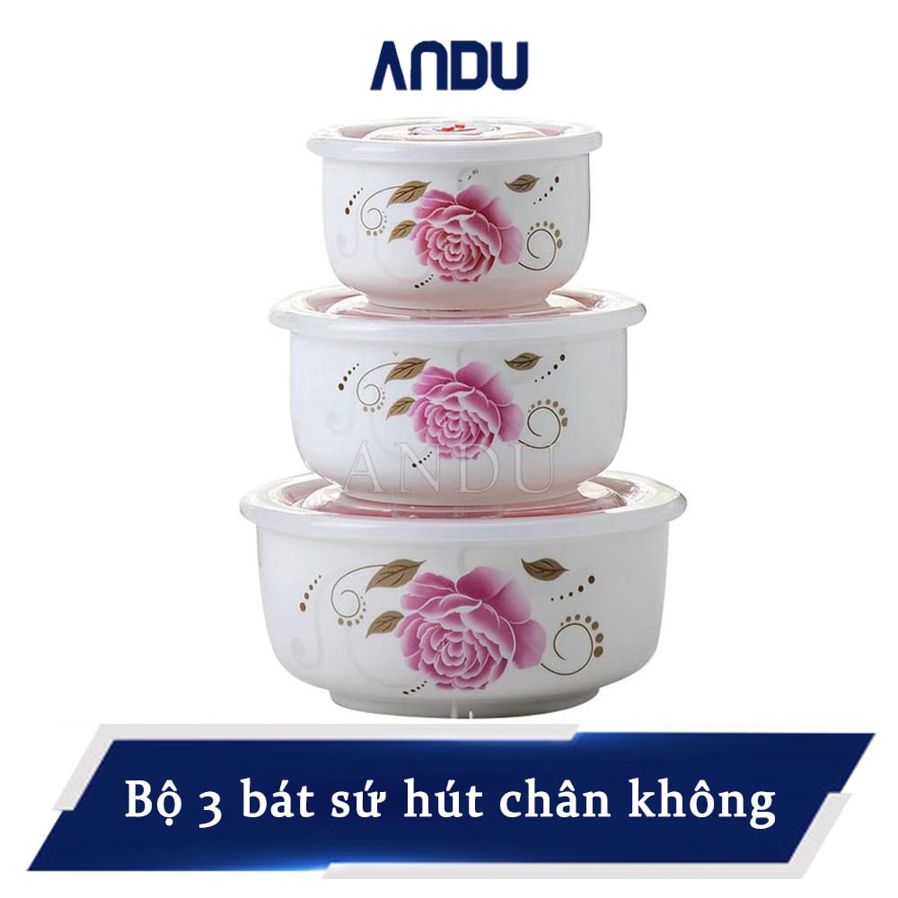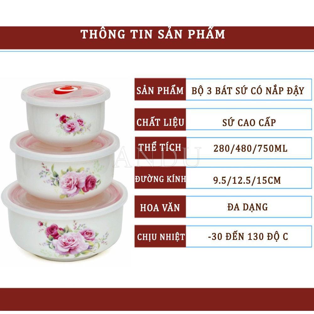 Bộ 3 Bát Sứ Có Nắp Đậy Hút Chân Không Cao Cấp