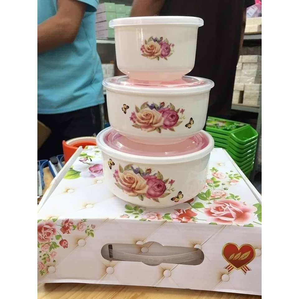 Nhà cửa & Đời sống > Bộ đồ bàn ăn > Tô || Bộ 3 bát sứ có nắp hút chân không hoa văn siêu đẹpCòn hàng