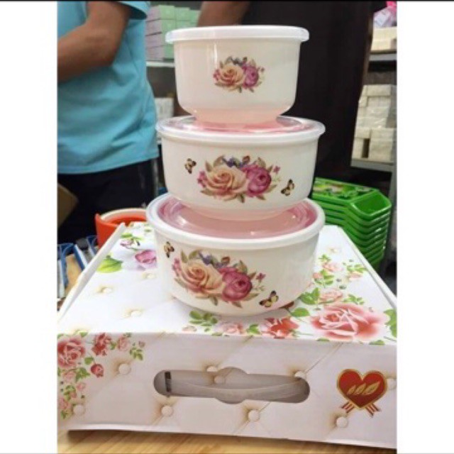 Nhà cửa & Đời sống > Bộ đồ bàn ăn > Tô || Bộ 3 bát sứ có nắp hút chân không hoa văn siêu đẹp và rẻCòn hàng