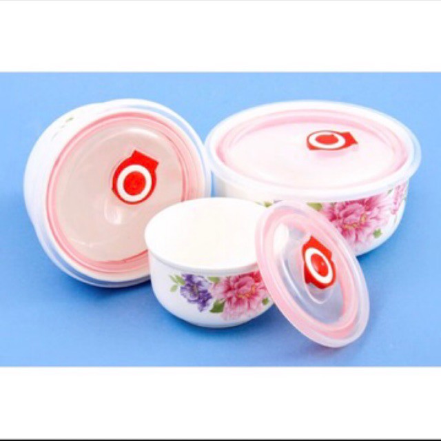 Bộ 3 bát sứ có nắp hút chân không hoa văn siêu đẹp và rẻ