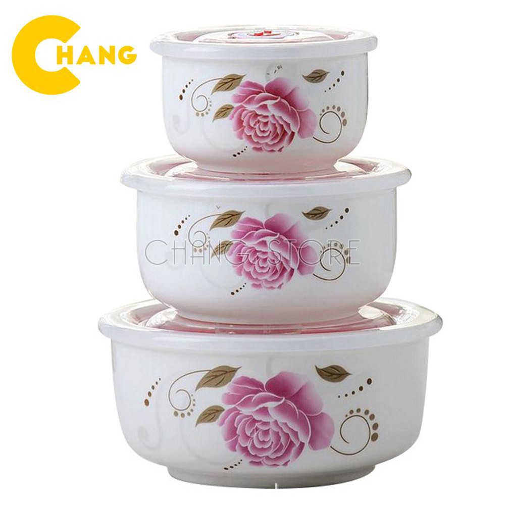 Giới thiệu Bộ 3 bát sứ có nắp hút chân không