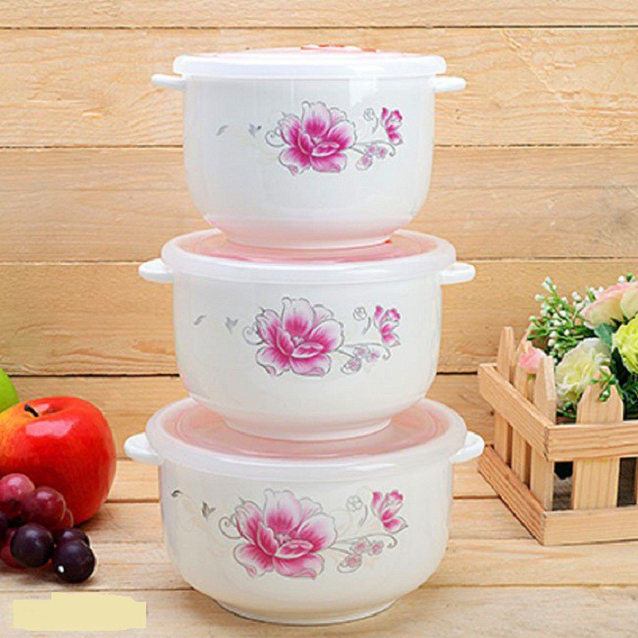 Nhà cửa & Đời sống > Bộ đồ bàn ăn > Tô || Bộ 3 bát sứ có tai nắp nhựa hút chân không cao cấpCòn hàng