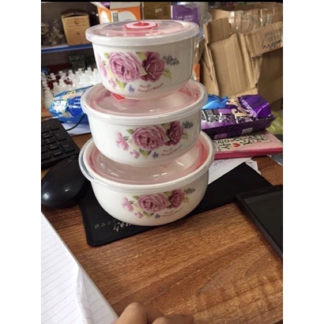 💥Bộ 3 bát sứ có nắp hút chân không 💥Hàng có sẵn