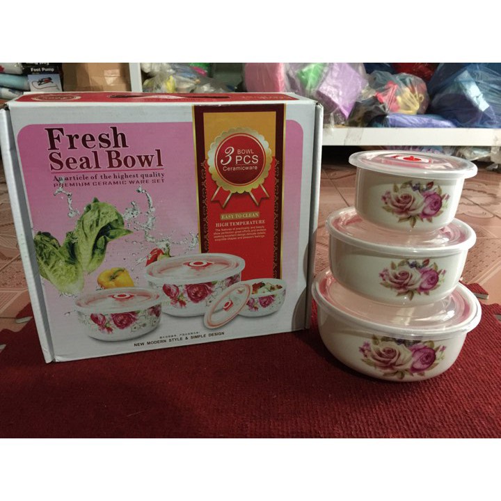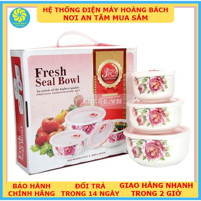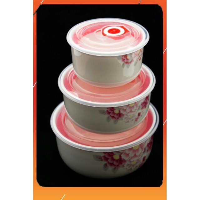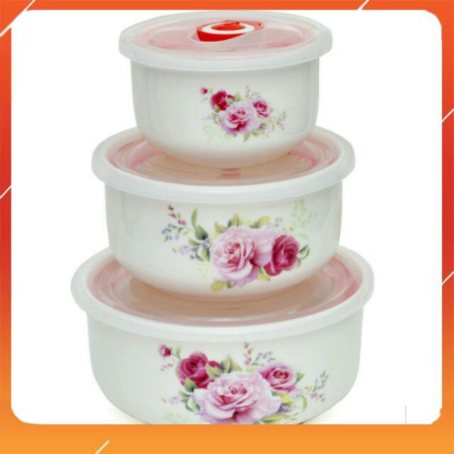 Nhà cửa & Đời sống > Bộ đồ bàn ăn > Lồng bàn || Bộ 3 bát sứ hút chân không nắp nhựa an toàn, sử dụng trong lò vi sóng, gốm sứ hoa văn đẹp.Còn hàng