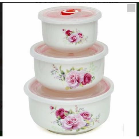 - Chất liệu: gốm sứ , nắp nhựa- Bộ sản phẩm: gồm 3 bát