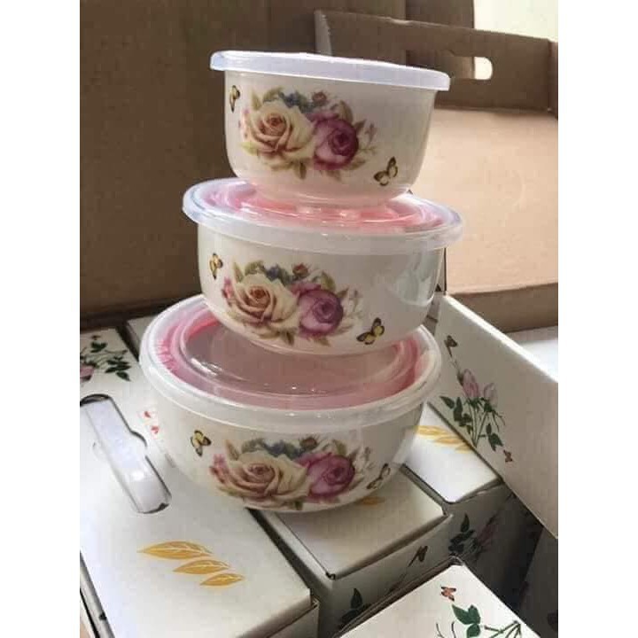 - Chất liệu: gốm sứ , nắp nhựa- Bộ sản phẩm: gồm 3 bát