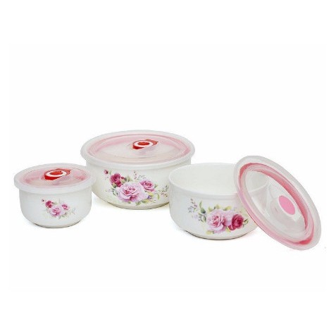 Bộ 3 bát sứ nắp hút chân không có tai cầm