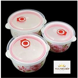 Giới thiệu Bộ 3 bát sứ nắp hút chân không có tai cầm