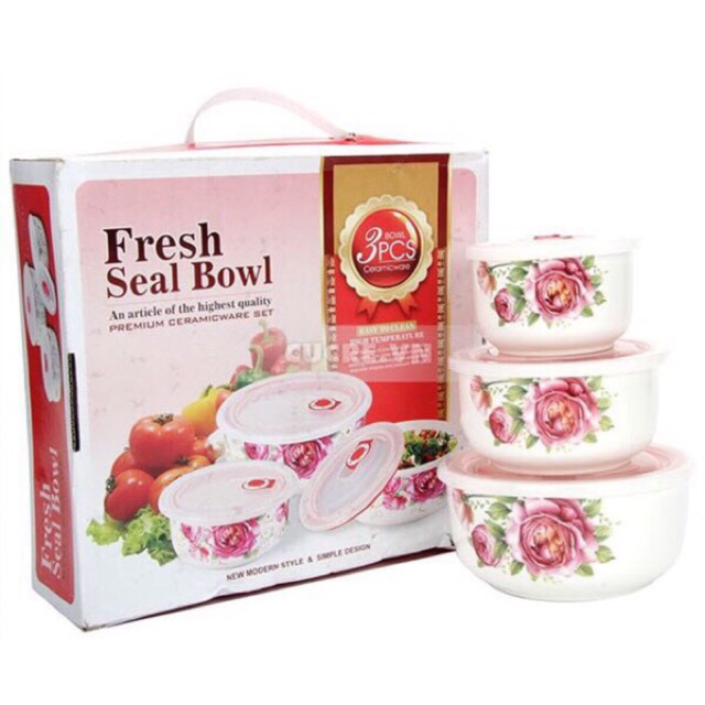Giới thiệu Bộ 3 bát sứ nắp hút chân không