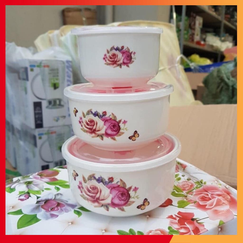Bộ set 03 bát sứ lạnh không tai mẫu hoa cao cấp, với nắp đậy kín cho bạn bảo quản thực phẩm một cách dễ dàng, có thể dùng trong lò vi sóng và tủ lạnh.- Sử dụng trong lò vi sóng và sử dụng như bát bình thường.