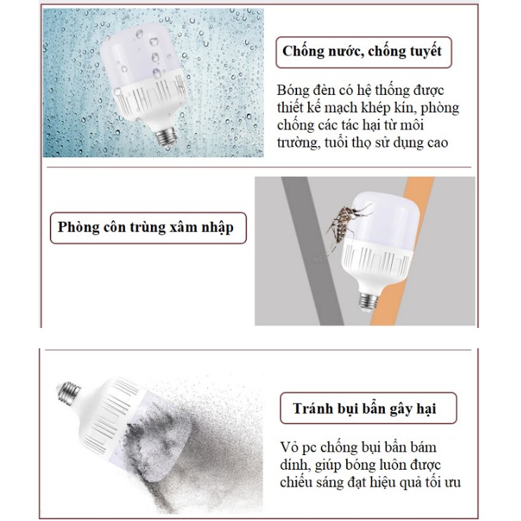 Bộ 3 bóng đèn led búp trụ 5w kín nước siêu bền
