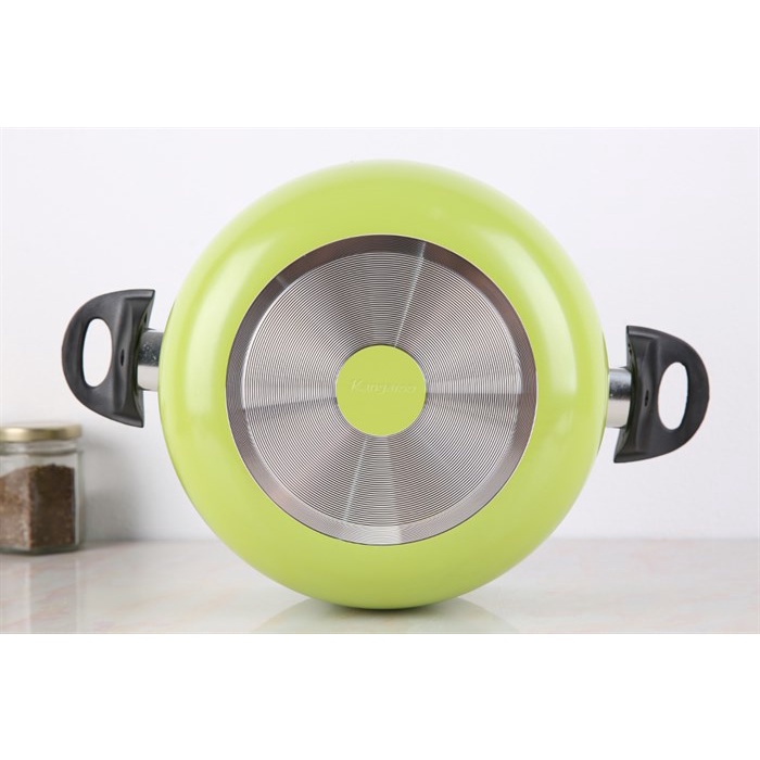 • Đáy nồi phẳng, rộng, hấp thu nhiệt tốt, tỏa nhiệt đều giúp nấu các món ăn chín nhanh, chín đều, tiết kiệm gas