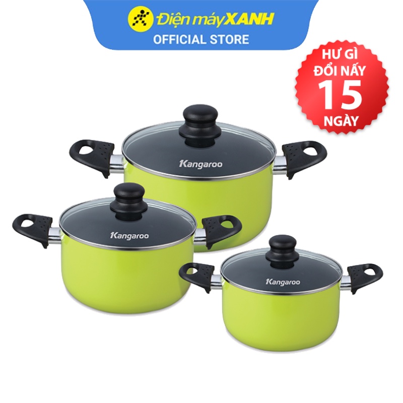 Nhà cửa & Đời sống > Dụng cụ nhà bếp > Nồi || Bộ 3 cái nồi nhôm chống dính nắp kính Kangaroo KG993MXCòn hàng