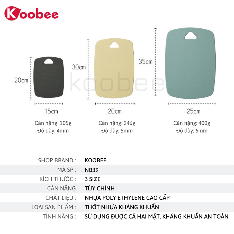 🔰TÊN SẢN PHẨM:Bộ 3 cái thớt nhựa kháng khuẩn cao cấp - Bộ thớt nhựa chế biến ăn dặm cho bé không mùi an toàn 100% KooBee (NB39)