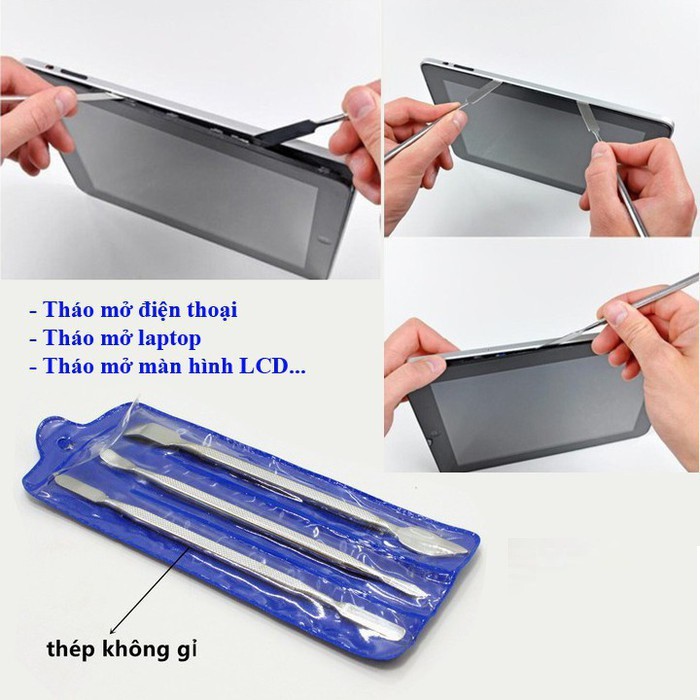 Bộ 3 cây nạy mở điện thoại, máy tính bảng, laptop, đồng hồ... chất liệu inox