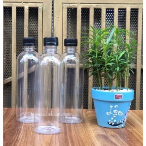 Màu sắc: thân chai màu trắng trong, nắp chai nhựa màu đen