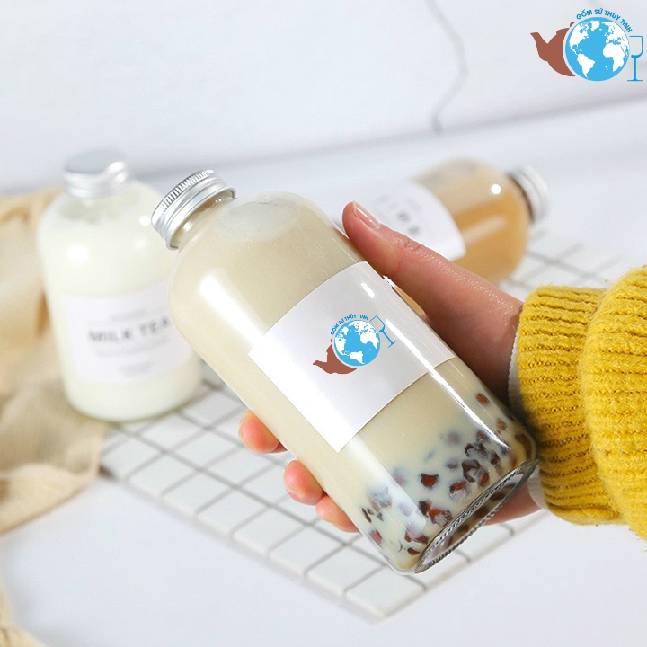 Nhà cửa & Đời sống > Bộ đồ bàn ăn > Bình nước & phụ kiện || 3 Chai thủy tinh TRÒN 500ml nắp nhôm đựng nước detox - BỘ GỒM 3 CHAICòn hàng