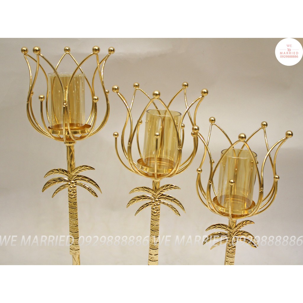 Bộ 3 chân nến cây dừa - CN160Chất liệu: kim loại mạ, ống thuỷ tinh