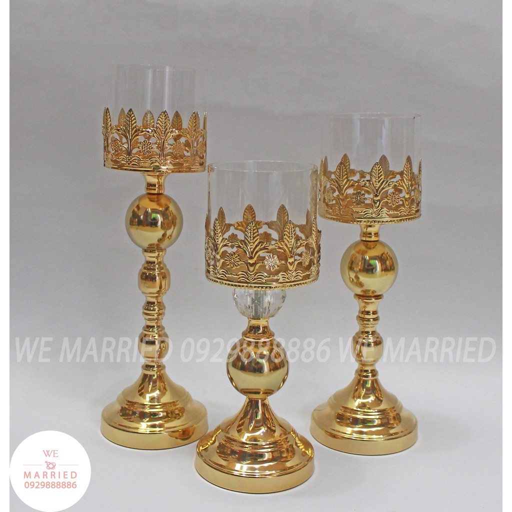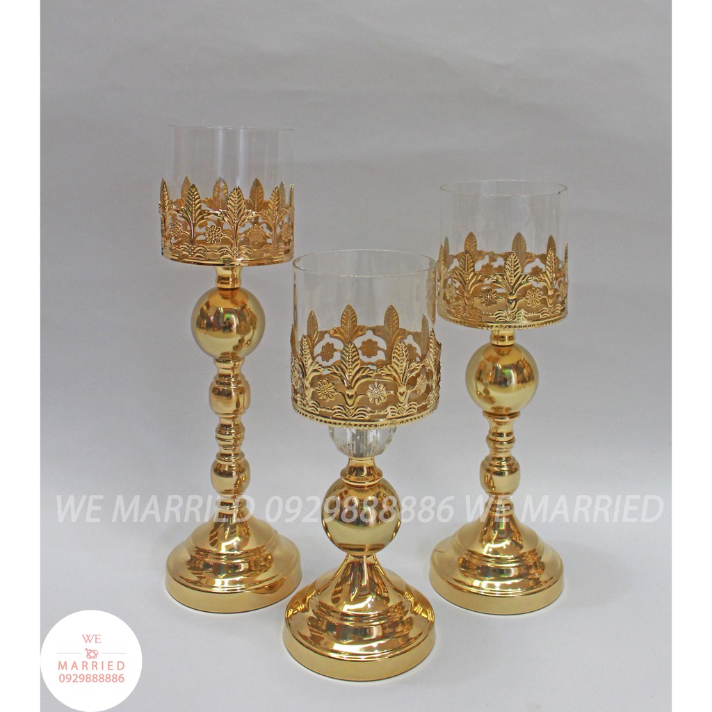 Bộ 3 chân nến - CN085 | Bộ 3 chân nến đẹp mắt, tinh tếChất liệu: khung kim loại, ống chụp thuỷ tinh