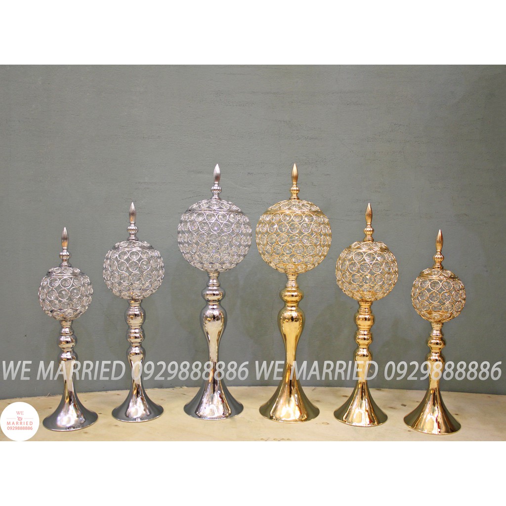 Bộ 3 chân nến đuôi cá bát pha lê - CN156Chất liệu: Khung kim loại mạ, đá pha lê