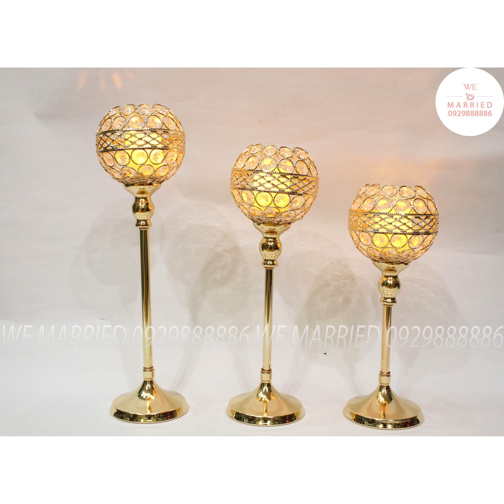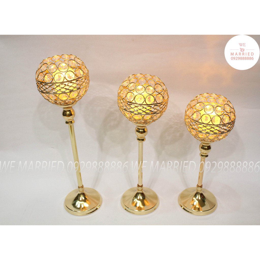 Chất liệu: sắt, quả nến tròn có đính đá pha lê