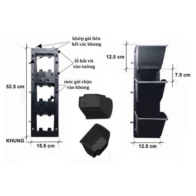 Bộ chậu vườn tường bạn chỉ việc khoan lên tường rồi gắn chậu lên khung là trồng được cây ngay, khi muốn thay cây bạn dễ dàng dỡ chậu xuống rồi thay cây thôi.