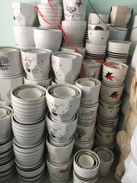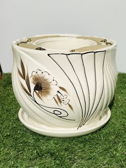 bộ 3 chậu gốm sứ có kèm địa đựng nước, trồng cây, cắm hoa các kiểu rất xinh- Kích thước: