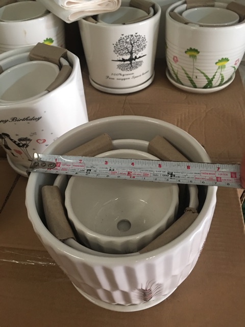 + Chậu nhỡ : chiều cao 13 cm, đường kính miệng chậu 13cm.