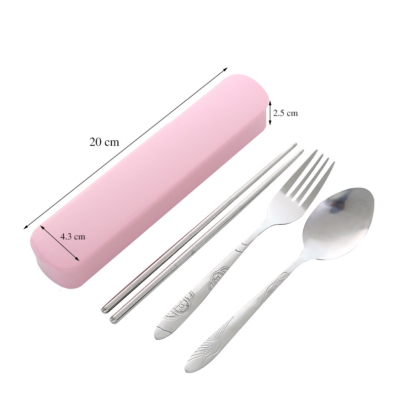 Bộ 3 chi tiết đũa, thìa, dĩa inox 304 có hộp đựng màu trơn Boremart