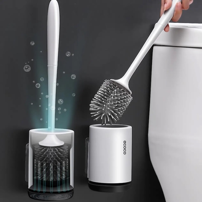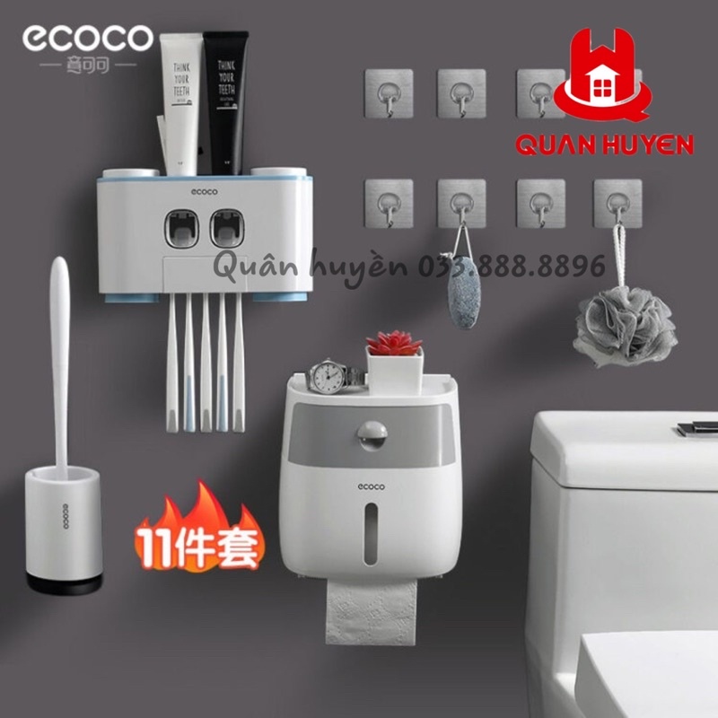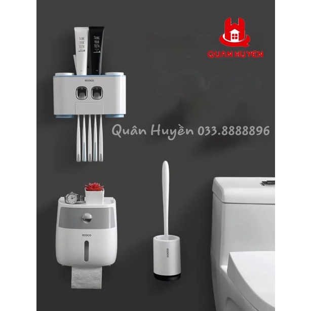 Bộ 3 chi tiết Ecoco | Kệ nhả kem 4 cốc, Cọ toilet silicon, Hộp giấy vệ sinh 2in1 không khoan tường mẫu mới