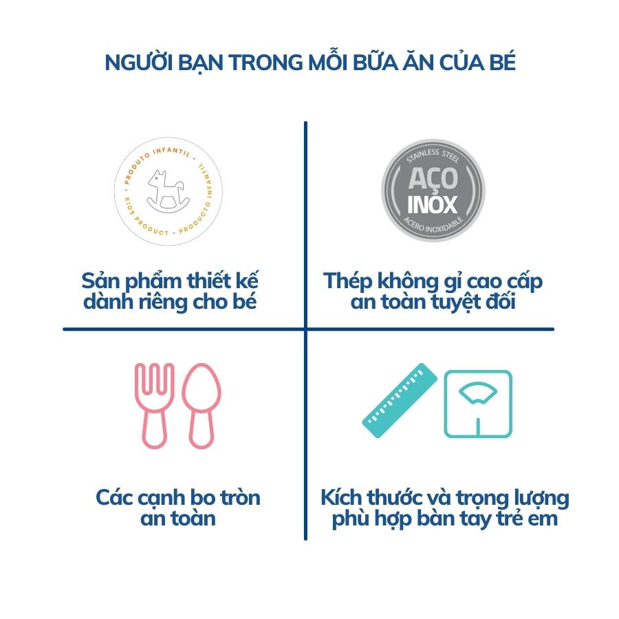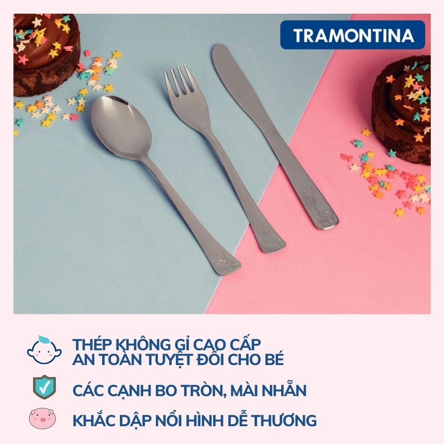Bộ 3 chiếc dao thìa dĩa cho bé Tramontina thép không gỉ cao cấp hàng chính hãng nhập khẩu Brazil