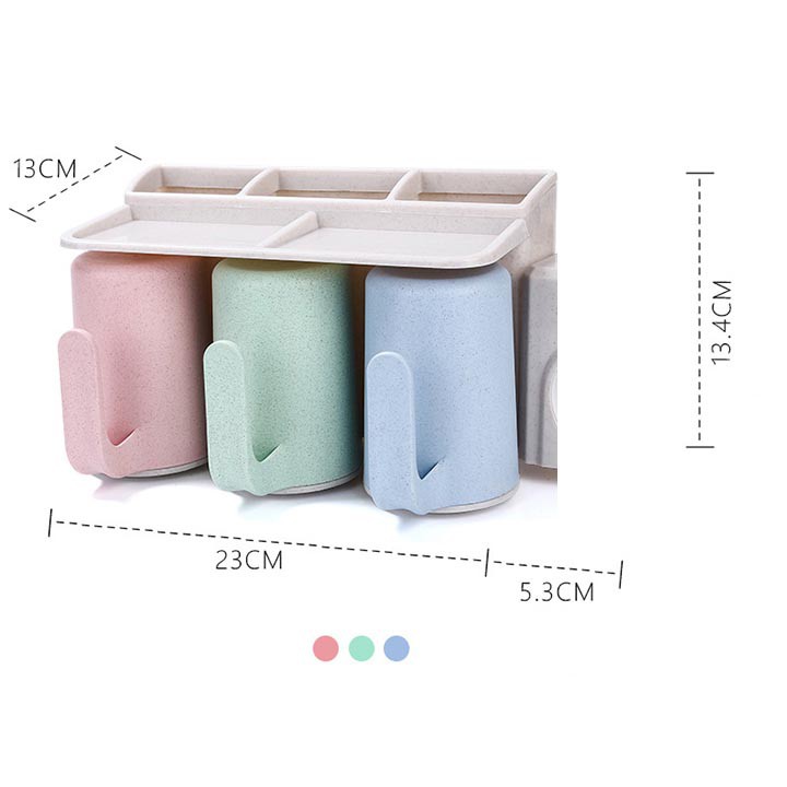 Bộ 3 Cốc Hộp Nhả Kem Đánh Răng Giá Treo Dính Tường Phòng Tắm Mengni MNYSJ-083