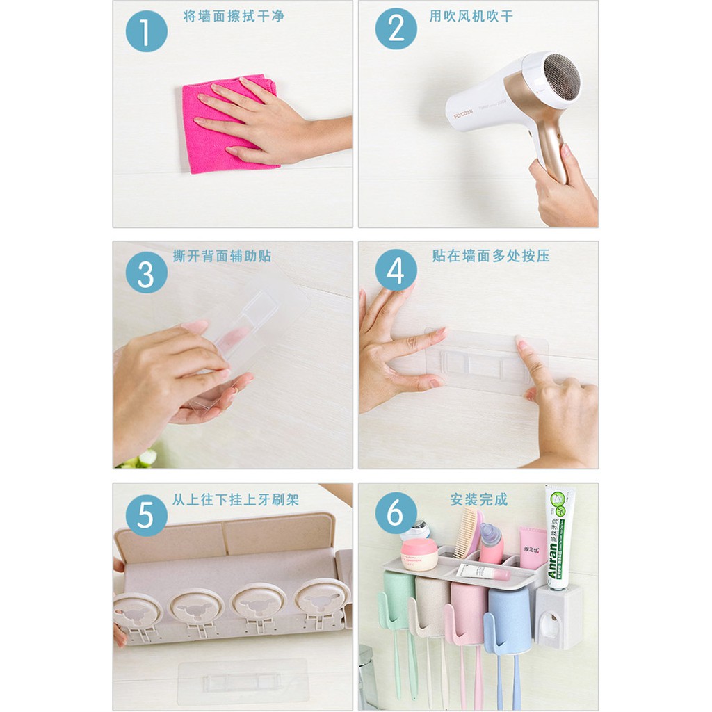 Giới thiệu Bộ 3 Cốc Hộp Nhả Kem Đánh Răng Giá Treo Dính Tường Phòng Tắm Mengni MNYSJ-083